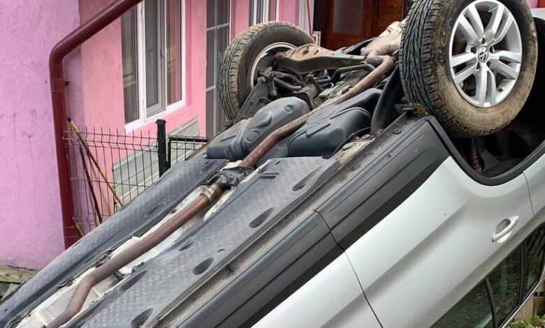 Accident rutier, cu mașină răsturnată în șanț, în Petin! Șoferul era băut și cu permisul suspendat!