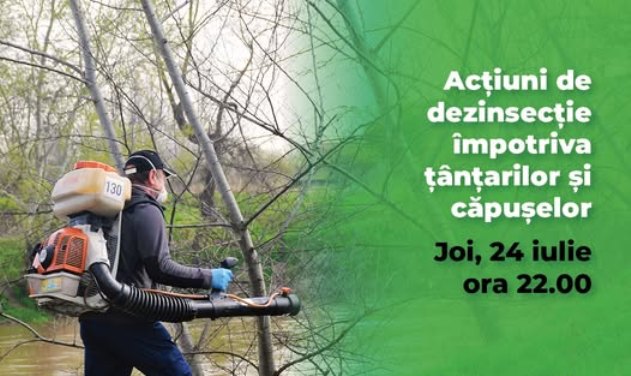 Primăria Satu Mare informează că joi, 24 iulie, după ora 22.00, va avea loc o acțiune de dezinsecție împotriva căpușelor și a țânțarilor, pe raza municipiului.