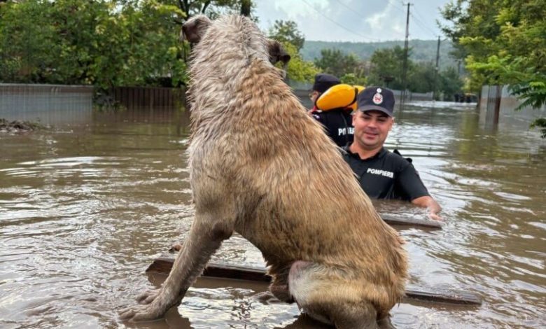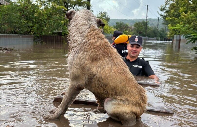 Inundațiile au făcut prăpăd în România în ultimele 24 de ore. Salvatorii au intervenit pentru evacuarea oamenilor, dar n-au uitat și de bietele animale.