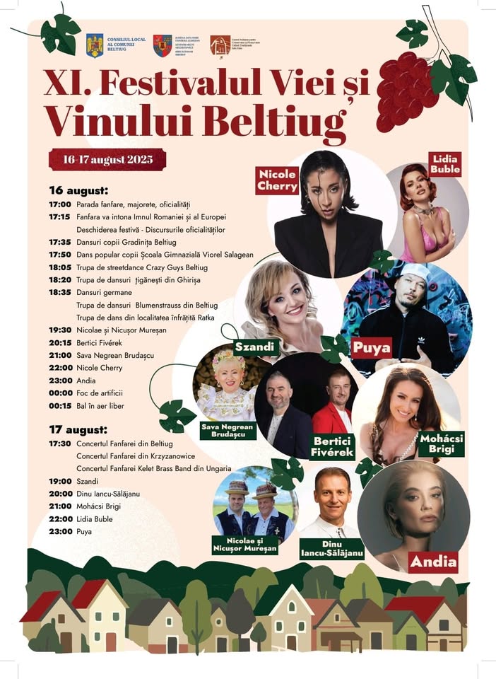 Comuna Beltiug va găzdui în perioada 16-17 august 2025, cea de-a XI-a ediție a Festivalului Viei și Vinului Beltiug.