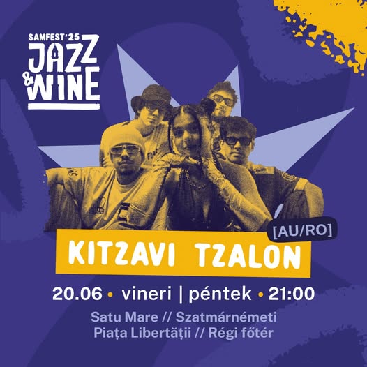 Vineri, 20 iunie, intră în scenă formația de jazz-fusion Kitzavi Tzalon din Viena, condusă de artista originară din Satu Mare, Stephanie Semeniuc, aduce ritmuri care te țin în mișcare toată noaptea. Muzica lor îmbină jazz, house, neo-soul și funk – o fuziune complexă, dar incredibil de catchy.