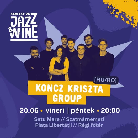 Tot vineri, Koncz Kriszta Group – o formație alcătuită din șapte muzicieni excepționali și condusă de vocea expresivă a lui Koncz Kriszta, artista originară din Satu Mare, va aduce un univers muzical sensibil și dinamic.