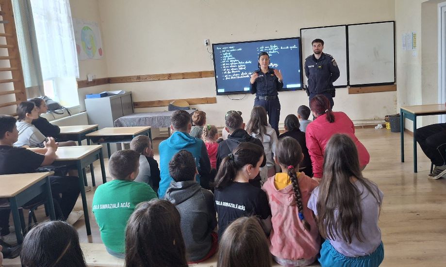 În contextul derulării la nivel național a evenimentelor „Săptămâna Școala în Siguranță” și „Săptămâna Națională a Siguranței Rutiere”, în data de 22 mai a.c., polițiștii din cadrul Inspectoratului de Poliție Județean Satu Mare – Biroul Siguranță Școlară, împreună cu polițiștii din cadrul Serviciului Rutier, Compartimentului de Prevenire și Analiză a Criminalității, Postului de Poliție Acâș, dar și împreună cu lucrătorii din cadrul Inspectoratului de Jandarmi Județean Satu Mare, au desfășurat activități preventive la Școala Gimnazială Acâș, având ca teme centrale prevenirea violenței în mediul școlar și creșterea gradului de siguranță rutieră.