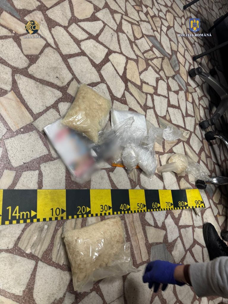 Astfel, au fost puse în executare 27 de mandate de percheziție domiciliară, în urma cărora au fost descoperite și indisponibilizate 12,5 kg de droguri de mare risc (3-CMC), 1 kg de cannabis, cântare de mare precizie, grindere, două autoturisme și 170.000 de lei.