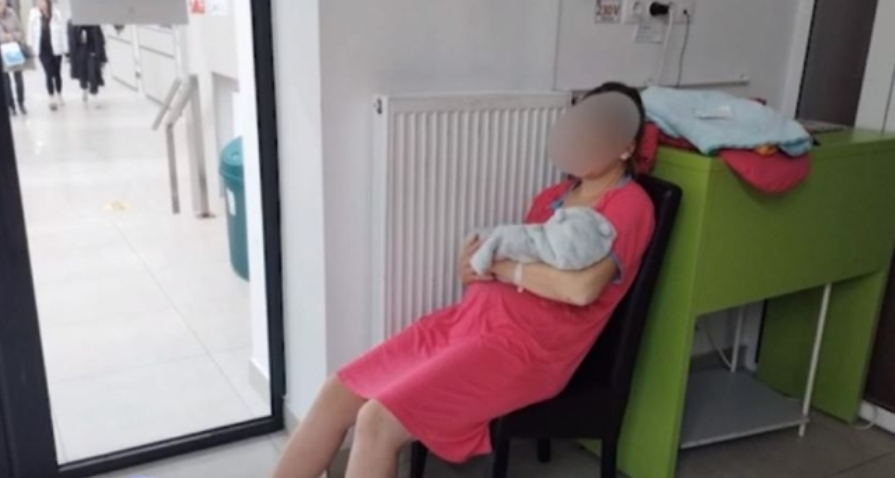 Mămică externată din spital doar în halat, cu bebelușul de trei zile în brațe!