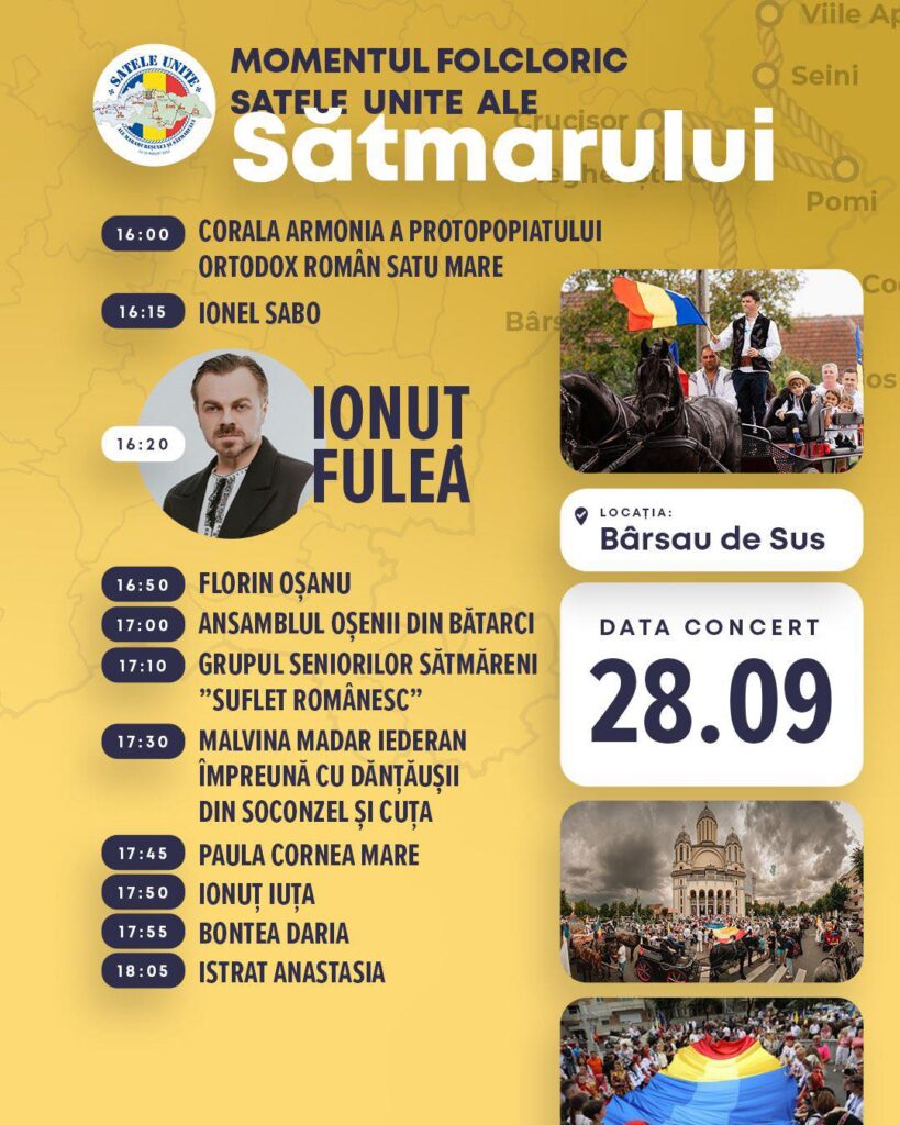 Marșul simbolic al identității naționale, în cadrul evenimentului „Satele Unite ale Sătmarului” 27-28 septembrie, încheiat de un spectacol folcloric!