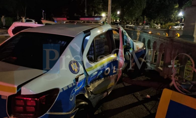 Mașină de poliție proiectată în gardul Catedralei Ortodoxe din Satu Mare!