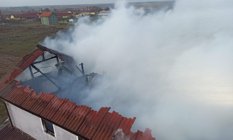 Din primele date, flăcările se manifestă pe o suprafață de aproximativ 250 de metri pătrați la nivelul acoperișului.