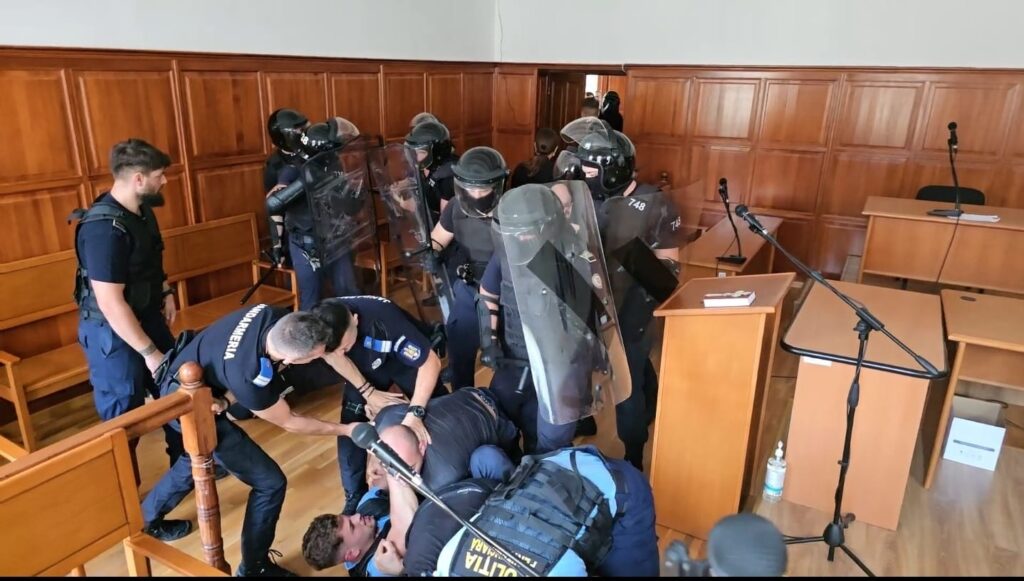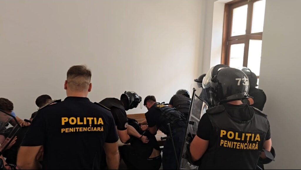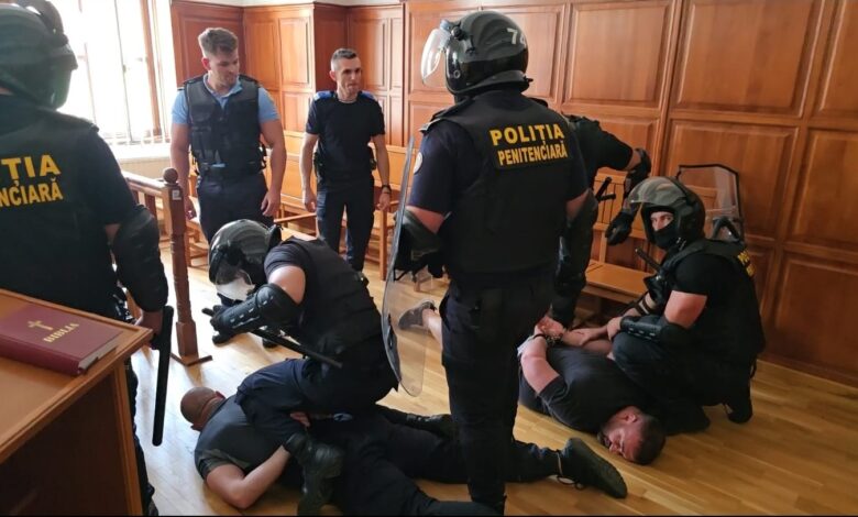 - prezentarea în fața instanței a unui deținut, însoțit de mai mulți aparținători care au protestat și au devenit agresivi;