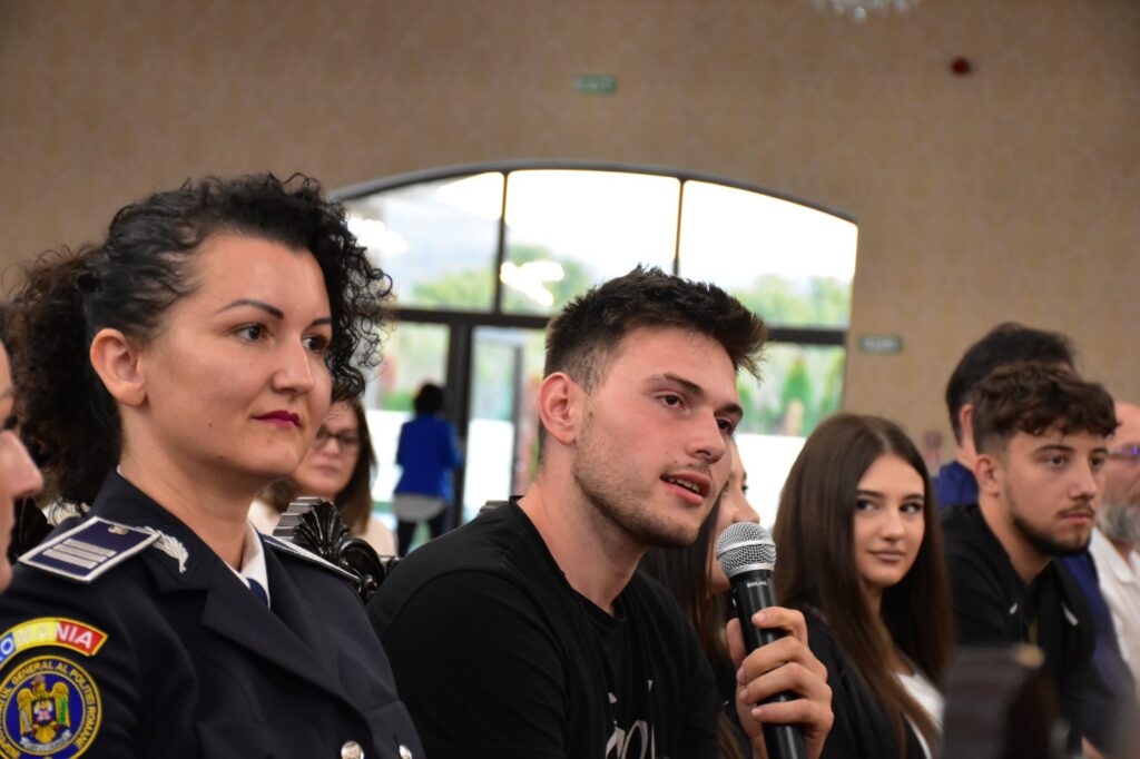 În aceeași zi, la Negrești-Oaș, a fost organizată o a doua conferință, intitulată ,,De la vulnerabilitate la echilibru: studiu asupra dependențelor”, adresată de această dată părinților și cadrelor didactice. Dependențele au fost abordate într-un dialog între inspector de poliție Lavinia Dan și invitatul special al evenimentului, prof.univ. dr. Radu Țincu , pornind de la dependența de tehnologie, poate cel mai răspândit tip de dependență în prezent. Modul în care comportamentele adictive (tehnologie, jocuri video, jocuri de noroc, sport în exces) și consumul de substanțe (alcool, medicamente, droguri, tutun, vape-uri) schimbă fiziologia creierului și afectează pe termen scurt, mediu și lung tinerii, a stat la baza înțelegerii unui fenomen care are implicații medicale, dar mai ales psihologice și sociale. Ieșirea dintr-o dependență presupune crearea unei plase de siguranță în jurul persoanei dependente, formată din părinți, familie, profesori, psihologi, medici și polițiști, renunțând la stigmat și oferindu-ne sprijin, fiecare acolo unde putem și suntem competenți să ajutăm.