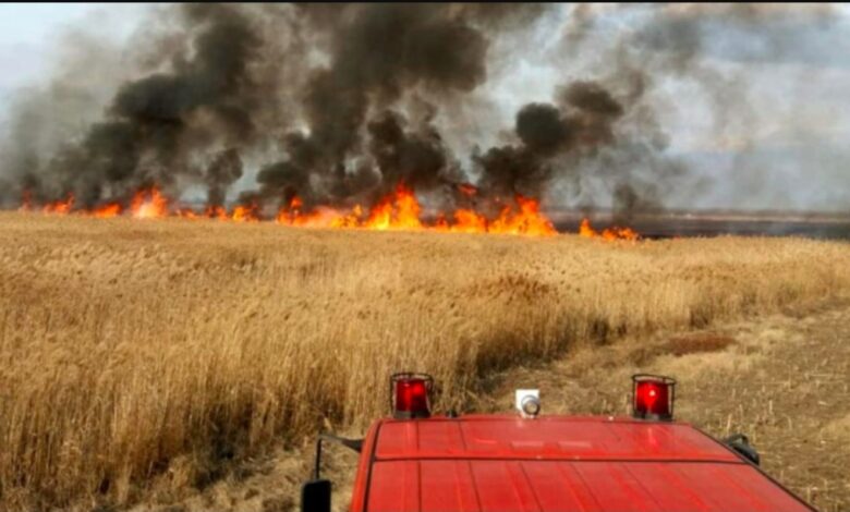 În urma acestuia au ars aproximativ 6 hectare de vegetație uscată și 7 baloți de paie.