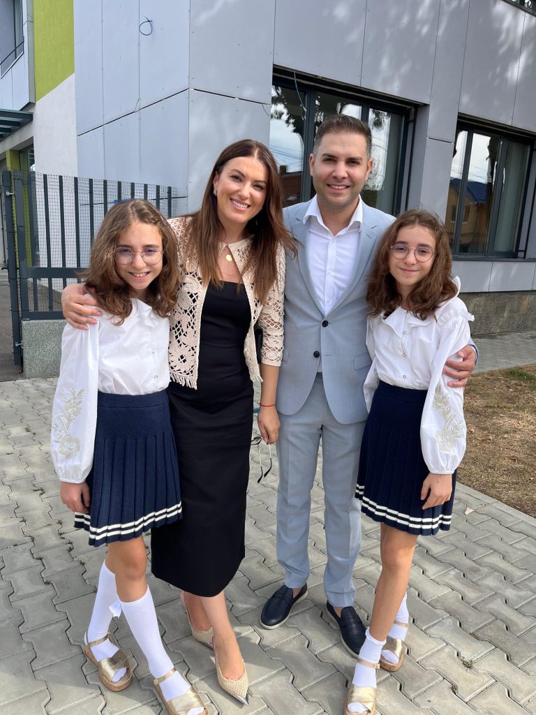 „Prima zi de şcoală alături de iubitele noastre, ajunse deja în clasa a V-a! Doamne, efectiv nu ştim cum a zburat timpul. Ne bucurăm de fiecare clipă împreună, Maria şi Ioana sunt deja două domnişoare în toată regula, foarte atente, responsabile şi conştiincioase. Ne-a binecuvântat Dumnezeu cu două fete cum nici n-am îndrăznit să visăm! Ne dorim doar să fim sănătoşi cu toţii şi le urăm tuturor copiilor, dar şi părinţilor, succes în noul an şcolar. Pentru noi nu este doar un nou început şcolar, ci şi începutul unui nou capitol în vieţile noastre! Despre ce este vorba, vă vom ţine la curent în zilele următoare!”, dezvăluie Lavinia şi Marius.