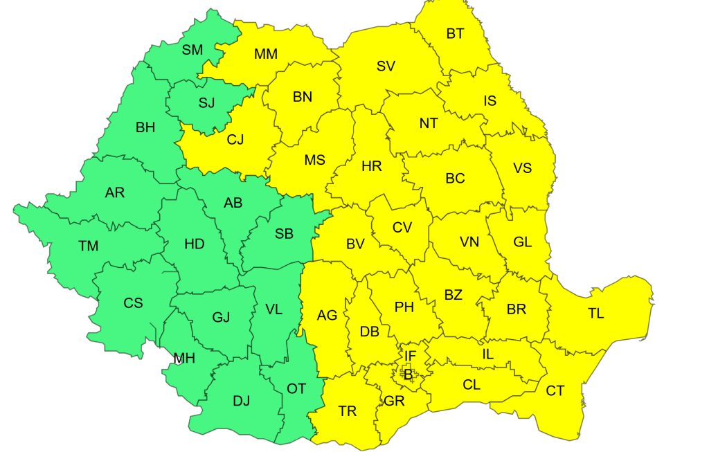 Codul galben de ger se va extinde în jumătate de țară, din aceată seară, de la ora 20.00, până mâine la ora 10.00.