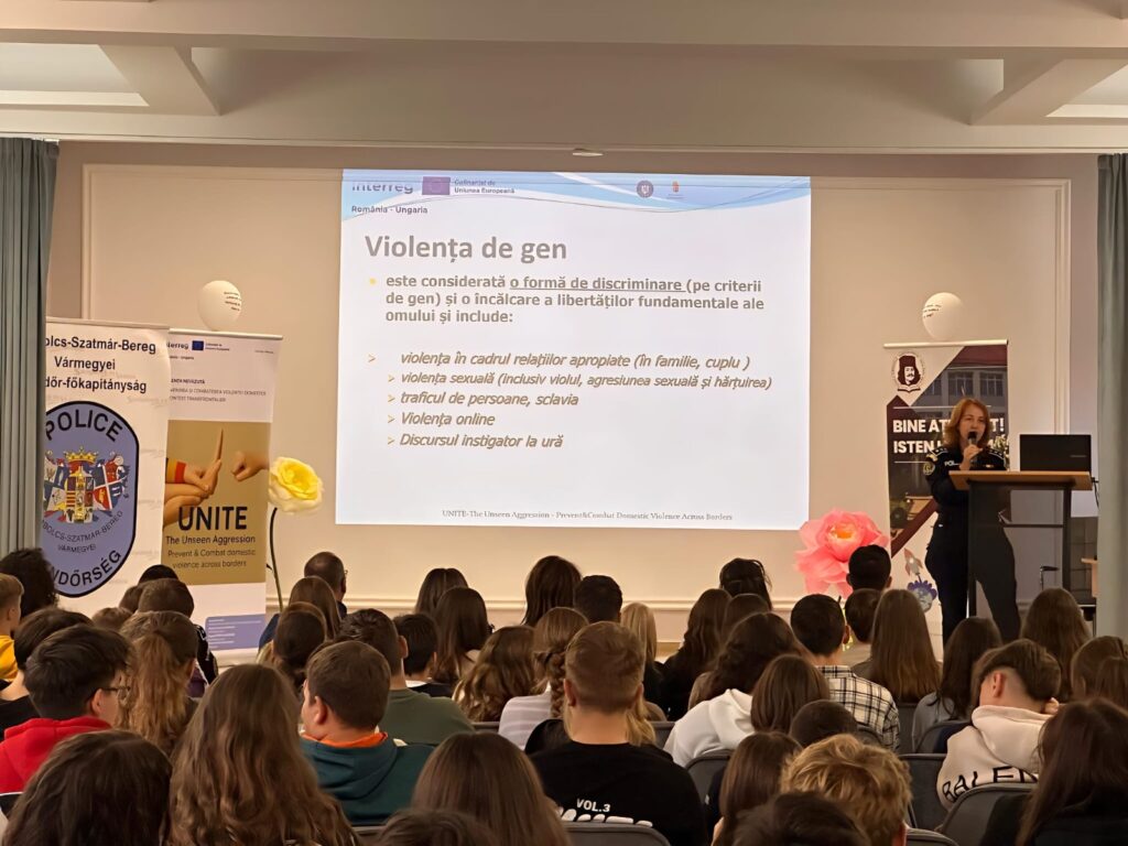 Cu prilejul Zilei Internaționale a Nonviolenței (2 octombrie 2025), Inspectoratul de Poliție Județean Satu Mare, în parteneriat cu polițiștii maghiari din cadrul Căpeteniei Superioare de Poliție a Comitatului Szabolcs-Szatmar-Bereg, a desfășurat două evenimente de prevenire la Școala Gimnazială „Rákóczi Ferenc” și la Colegiul Național „Kölcsey Ferenc”.