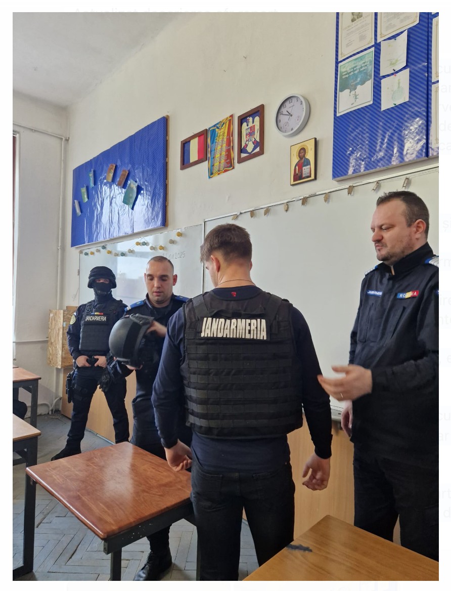 Cu această ocazie elevii au aflat, direct de la sursă, cum arată o carieră în Jandarmeria Română și ce provocare e să reziști cu echipamentul pe tine!