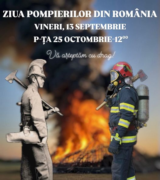 Inspectoratul pentru Situații de Urgență „Someș” Satu Mare invită, pe toți cei interesați, să participe la evenimentele dedicate Zilei Pompierilor din România, care va avea loc vineri, 13 septembrie 2024.