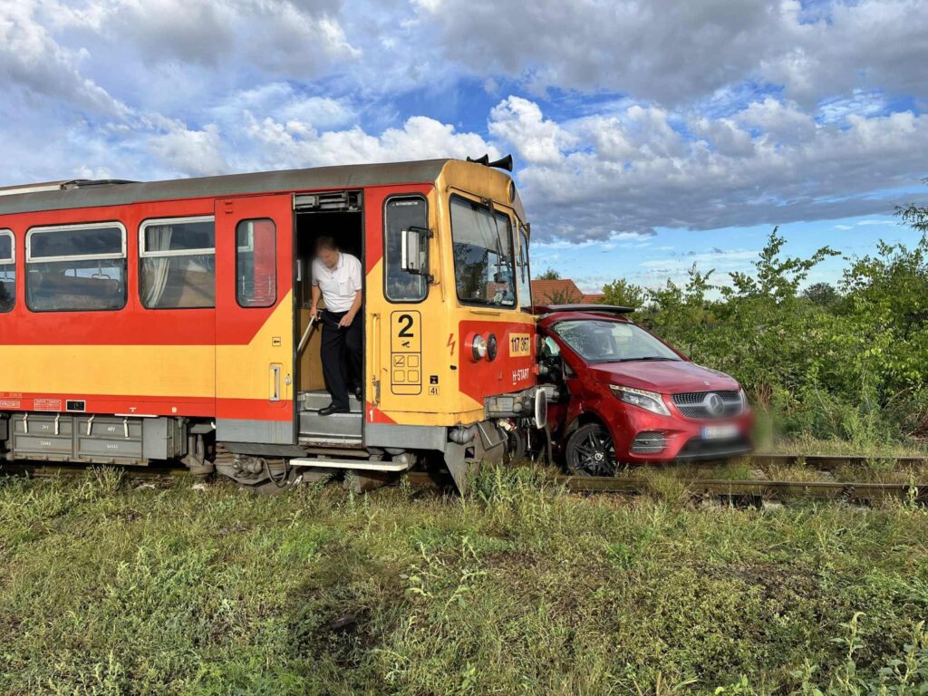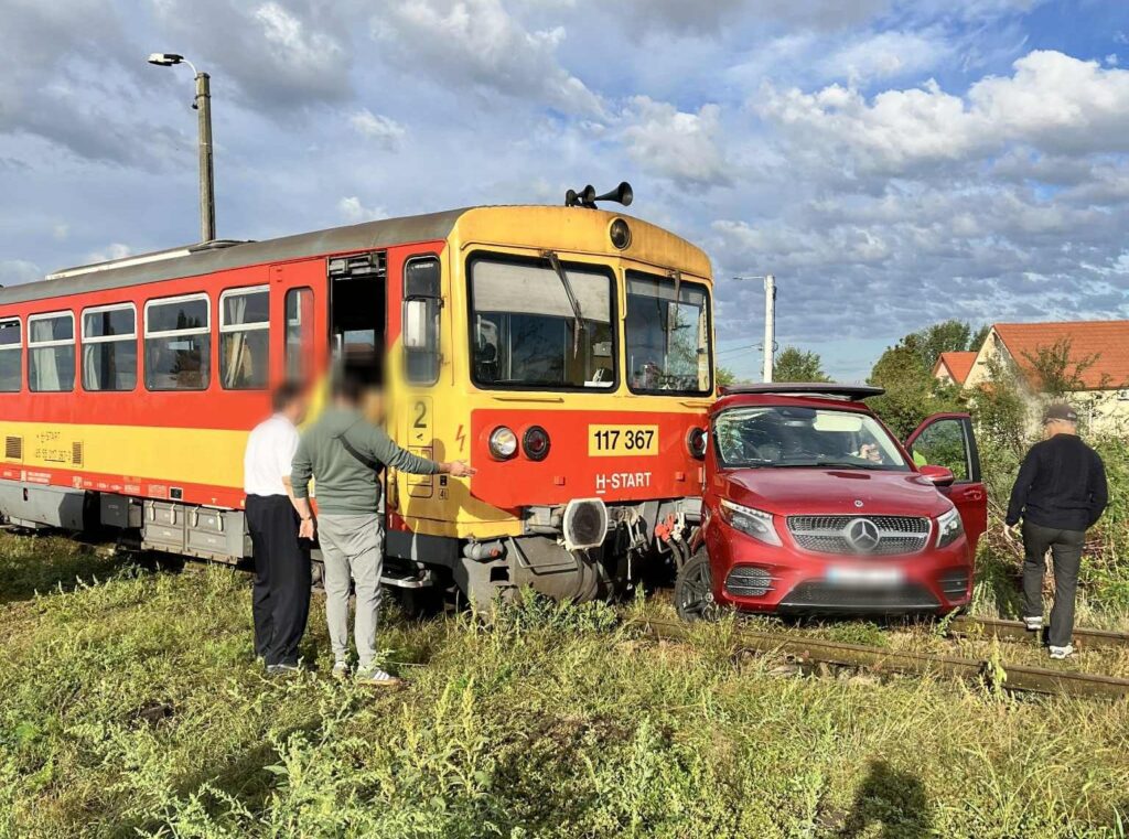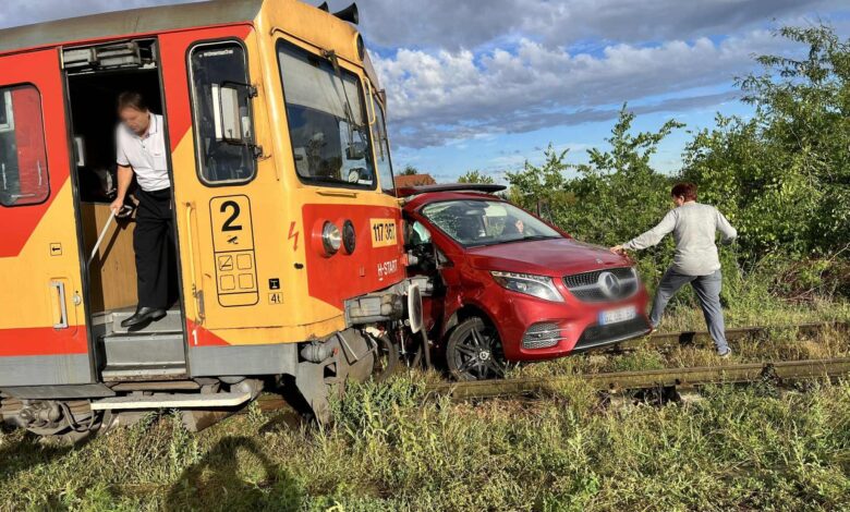 Un autoturism Mercedes cu numere de Franța a fost lovit de un automotor la Salonta, jud. Bihor. În urma impactului puternic, mașina a fost serios avariată iar automotorul a deraiat de pe șine. Autoturismul Mercedes era condus de o femeie, care era însoțită de un câine.