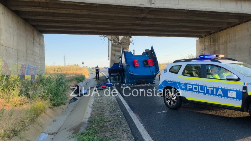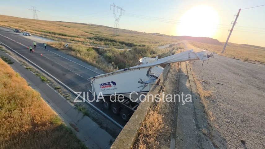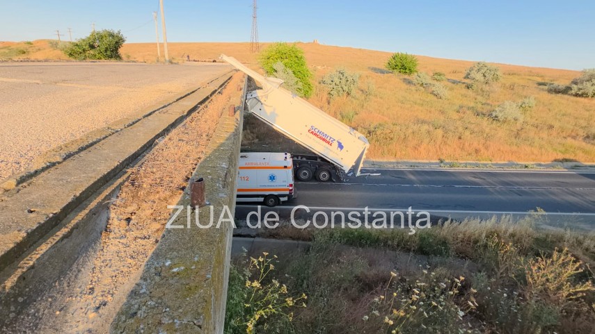 La locul accidentului pompierii militari au găsit autocamionul intrat în pod, iar victima conștientă a fost preluată de echipajul SMURD și transportată la UPU Constanța.