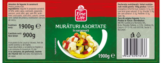 Potrivit ANSVSA, s-a inițiat retragerea de la comercializare și de la clienți a articolului „Fine Life – Murături asortate”, de 1.900 g. Motivul rechemării ar fi faptul că produsul conține alergeni (migdale).