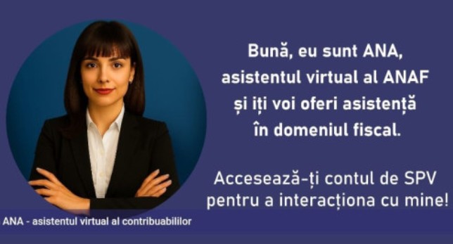 Agenția Națională de Administrare Fiscală a introdus oficial chatbot-ul ANA, un asistent virtual inteligent creat pentru a oferi contribuabililor informații rapide despre obligațiile fiscale. În faza de testare, ANA este disponibilă doar în conturile SPV ale utilizatorilor, urmând ca ulterior să poată fi accesată și pe portalul www.anaf.ro.