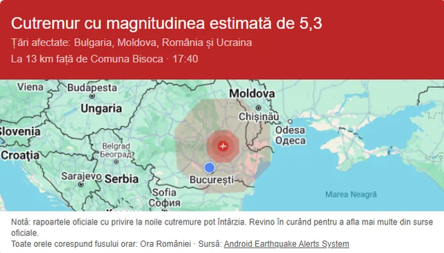Cutremur în România! Seismul s-a resimțit inclusiv în Bulgaria, Moldova și Ucraina.