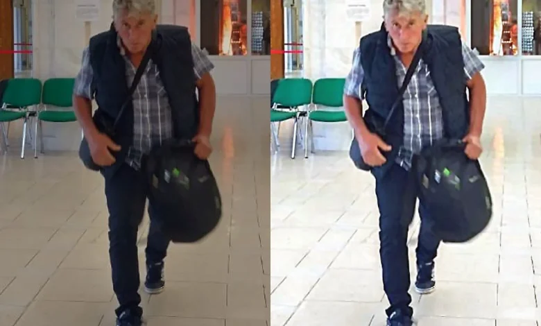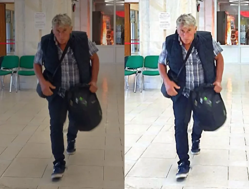 Poliția Română a publicat fotografii cu suspectul care a aruncat cu o substanță inflamabilă în palatul Parlamentului– capturi din imaginile video surprinse de camerele de pe holul Parlamentului: