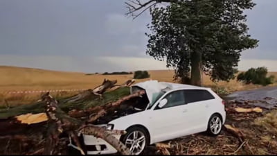 Două femei şi doi copii au trecut prin clipe de groază în timpul furtunii pe un drum din Teleorman. Un copac a căzut peste maşina lor aflată în mers. Autoturismul a fost strivit şi doar o minune a făcut ca cei patru să scape cu viaţă. Toţi au ajuns la spital cu diferite traumatisme.