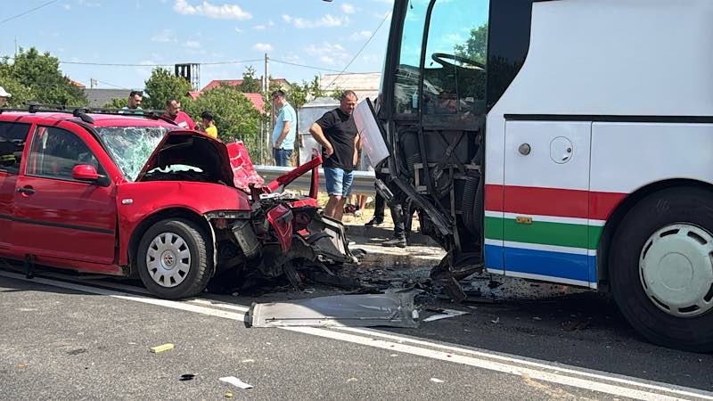 Foto/video: Impact devastator, cu doi morți, între un autocar și un autoturism, în județul Bihor! Accidentul surprins live!
