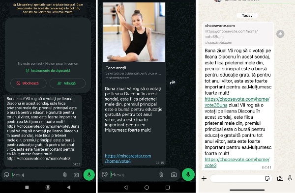 Utilizatorii aplicației Whatsapp sunt din nou ținta unei campanii de fraudă de tipul „votează fiica”. Pe scurt, pe aplicație de mesagerie circula un mesaj emoționant, venit din partea prietenilor care au fost naivi și au accesat un link necunoscut, iar în urma accesării au pierdut controlul asupra contului.