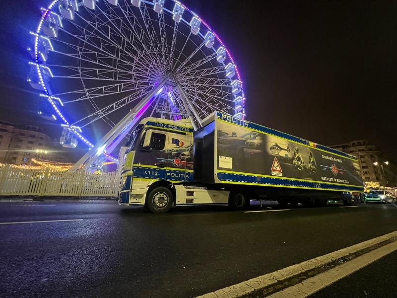 În această perioadă, caravana poate fi găsită la Târgul de Crăciun din Piaţa Constituţiei. Cei care o vizitează vor primi sfaturi și informații utile din partea polițiștilor şi vor putea testa cele două simulatoare.