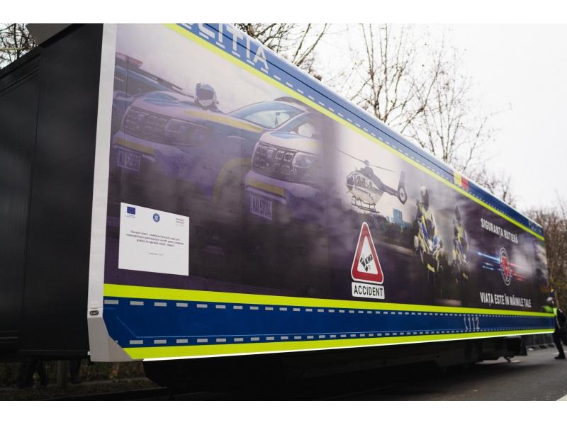 Noua caravană a Poliţiei Române a fost văzută pentru primă dată în trafic zilele trecute. Curioşii au filmat-o şi au postat imaginile pe o reţea de socializare. Noua achiziţie are scopul de a-i face pe şoferi să conştientizeze pericolul tragediilor, prin simulatore dotate cu tehnică de ultimă generaţie, scrie observatornews.ro.
