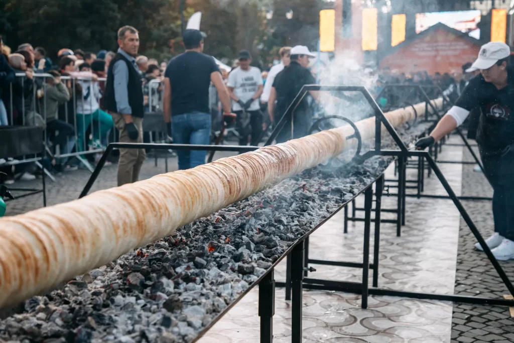 Record și tradiție în Ținutul Secuiesc! Un kürtőskalács de 21 metri lungime a fost preparat la Sfântu Gheorghe!