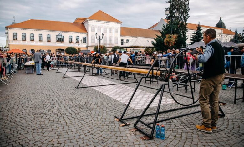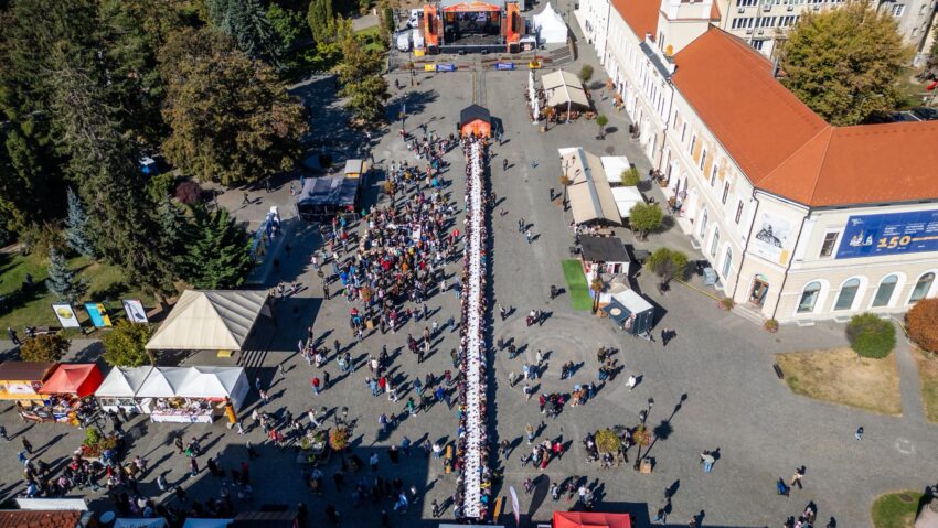 Piața Centrală din Sfântu Gheorghe a găzduit în acest weekend o nouă ediție a Festivalului Kürtőskalács, transformând orașul într-o veritabilă capitală a dulciurilor secuiești și a tradițiilor maghiare. Un colac secuiesc record, de 21 de metri lungime, a fost vedeta festivalului, preparat de echipa Borbély Kurtoskalacs din Armășeni, cu sprijinul Asociației Szekely Gazdaszervezetek. Performanța depășește cu jumătate de metru recordul stabilit în ediția precedentă și înscrie orașul în Cartea Recordurilor Maghiare.