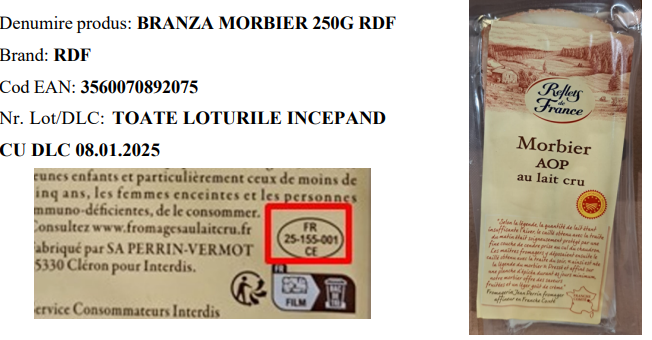 Carrefour anunţă retragerea de la comercializare a unui sortiment de brânză – MORBIER 250G RDF – ca urmare a suspiciunii de prezenţă a bacteriei Escherichia coli, potrivit unui anunţ transmis de către ANSVSA.