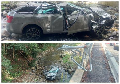 Tragedie în Bihor! O mașină ar fi rupt o balustradă și ar fi căzut circa 10 metri în gol! Pasagerul a murit pe loc!