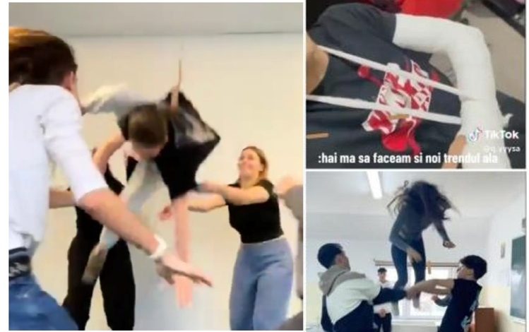 Imaginile recente de pe TikTok publicate în ultimele zile arată adolescenţi care încearcă această provocare, devenită trend la nivel internațional, multe dintre ele fiind filmate la şcoală, deseori fiind lăsaţi să cadă intenţionat de prietenii lor, ceea ce a dus la un val de accidentări severe.