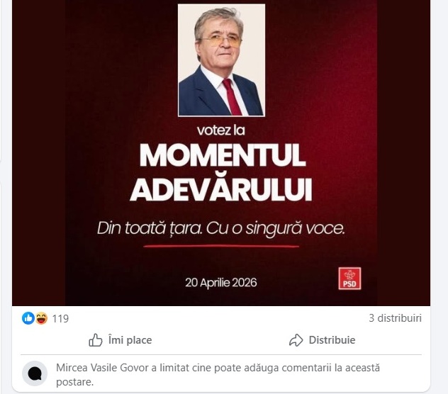 Partidul Social Democrat a ales o strategie radicală de comunicare în plină criză de imagine: izolarea digitală. După ce paginile oficiale ale greilor de la București au pus „lăcătul” pe secțiunile de comentarii, fenomenul a ajuns și la nivel local. Recent, și pagina de Facebook a deputatului PSD de Satu Mare, Mircea Govor, a urmat exemplul liderilor centrali, blocând accesul cetățenilor la dialog sub postările publice.