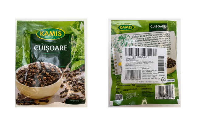 KAMIS Condimente SRL a inițiat retragerea condimentelor contaminate din magazinele Mega Image, Profi, Kaufland și Selgros. Cuișoarele fap parte din lotul 0002791365.