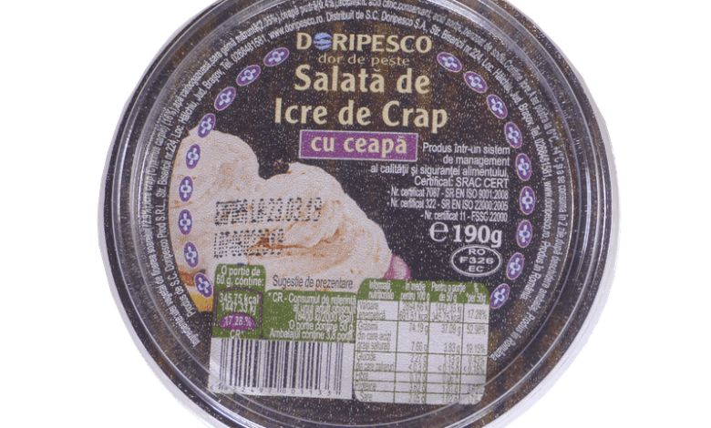 Potrivit informaţiilor publicate pe site-ul Autorităţii Naţionale Sanitar-Veterinare şi pentru Siguranţa Alimentelor (ANSVS), producătorul SC Doripesco Prod SRL, județul Brașov, a retras de la vânzare produsul ”Salată de icre de crap”, la 190 de grame, cu număr de lot 05.09.2025 şi cu termenul de valabilitate: 20.10.2025, comercializat în supermarketurile Kaufland.