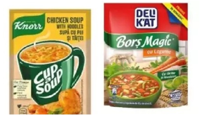 Este vorba despre „Delikat Borș Legume 165G” și „Knorr Cup a Soup Pui cu Tăiței 12g”.