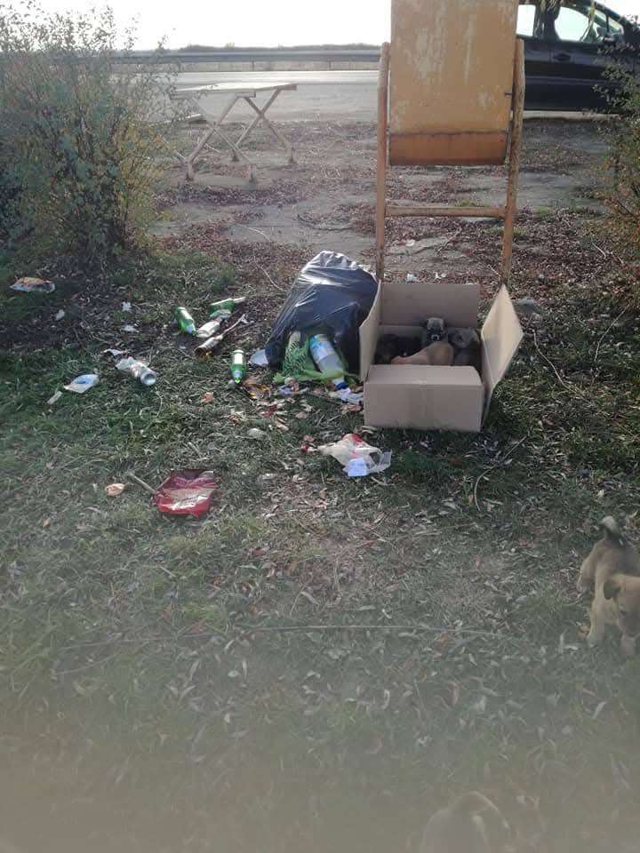 Iată cum au fost găsiți, în cutii de carton, câțiva cățeluși abandonați!