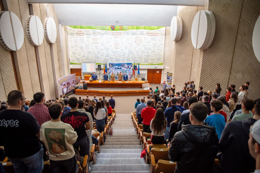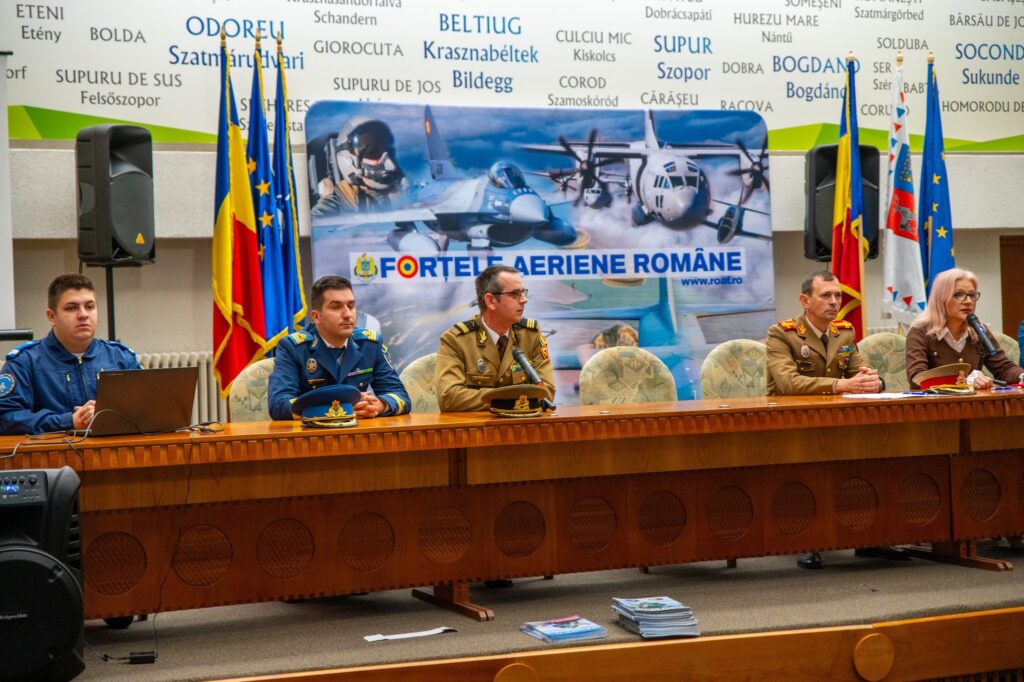 Personal militar activ din cadrul Forțelor Aeriene Române, alături de elevi şi studenți ai celor 2 instituții militare de formare, Academia Forţelor Aeriene „Henri Coandă” din Braşov și Școala Militară de Maiștri Militari și Subofițeri a Forțelor Aeriene din Boboc împreună cu personalul Centrului Militar Județean Satu Mare, au relatat elevilor aspecte relevante din cariera militară în aviație şi care sunt paşii pentru înscriere, recrutare, selecție şi admitere.