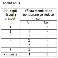 Perioada cea mai mare de reducere o vor avea femeile care au născut și crescut 7 sau mai multi copii. Acestea vor putea intra mai repede în pensie de limită de vârstă cu trei ani și 6 luni, dacă au realizat stagiului complet de cotizare, așa cum prevede noua lege a pensiilor