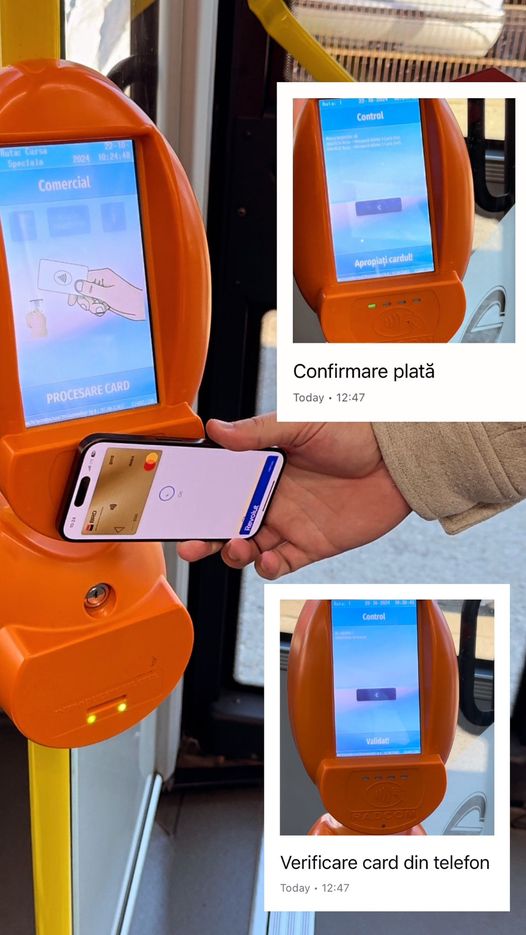 ATENȚIE! În momentul reapropierii telefonului de validator pentru verificare, validatorul este blocat de către controlori și nu există riscul de a se înregistra o nouă plată!