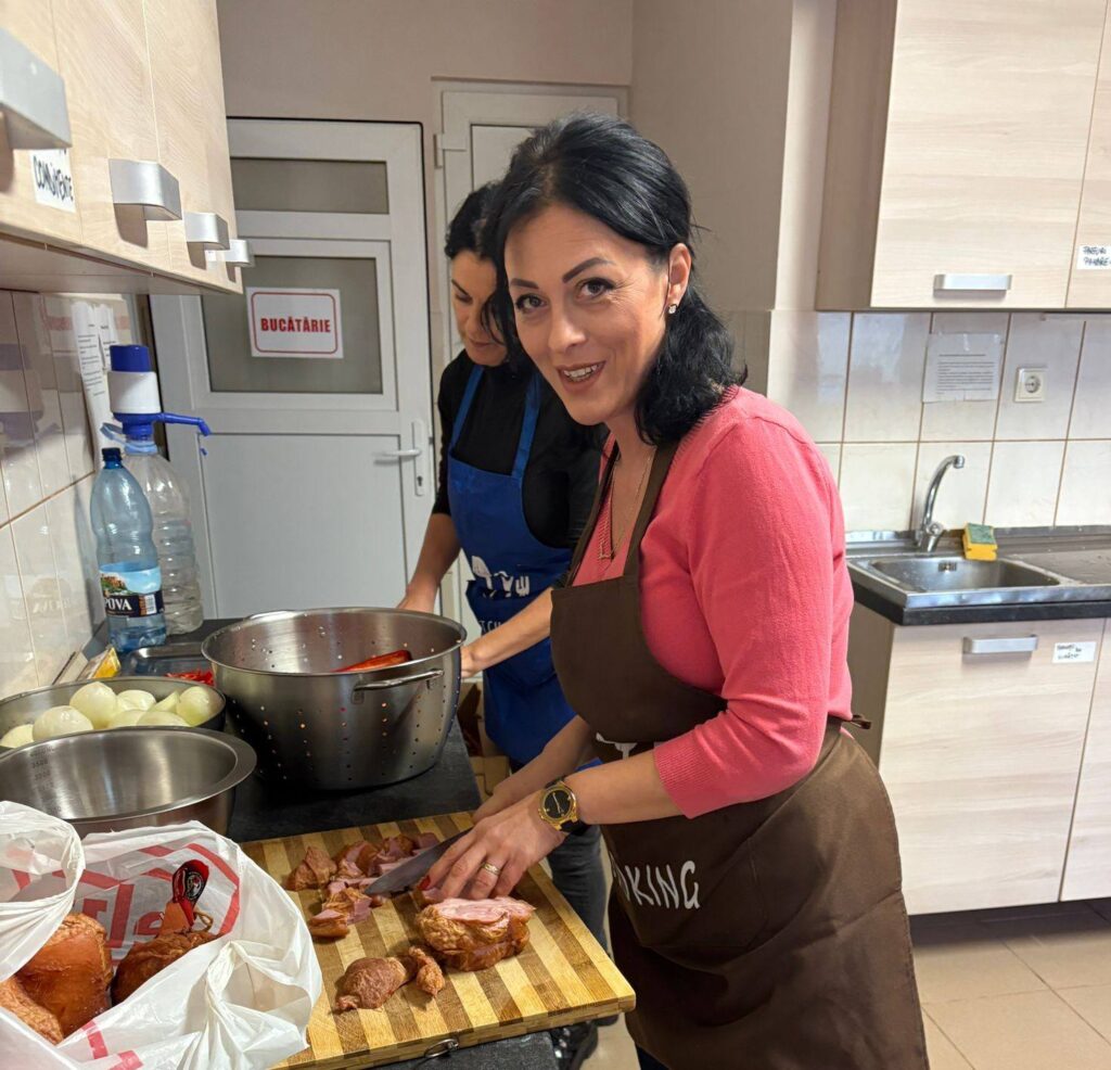 După ce au donat sânge, jandarmii au venit direct la Asociație, unde au gătit și au oferit o masă caldă persoanelor aflate în nevoie din cadrul Adăpostului de noapte din Satu Mare.