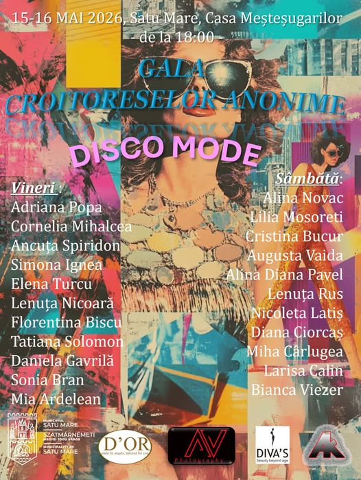 Sătmărenii sunt invitați, la mijlocul lunii mai, la un eveniment dedicat creativității și nostalgiei anilor ’80–’90. „Gala Croitoresele Anonime”, desfășurată sub tema „Disco Mode”, va avea loc în perioada 15–16 mai 2026, de la ora 18:00, la Casa Meșteșugarilor din Satu Mare.