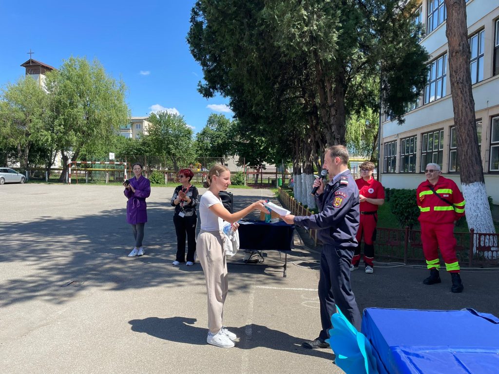 Ambițioși, curajoși și pregătiți temeinic de către profesorii lor, concurenții au avut de parcurs trei probe, una teoretică şi două probe practice respectiv: „Deplasarea cu masca pe figură într-un raion cu obstacole, contaminat”, și „Transportul asistat al unui accidentat aşezat pe targă pe distanţa de 50 de metri”.