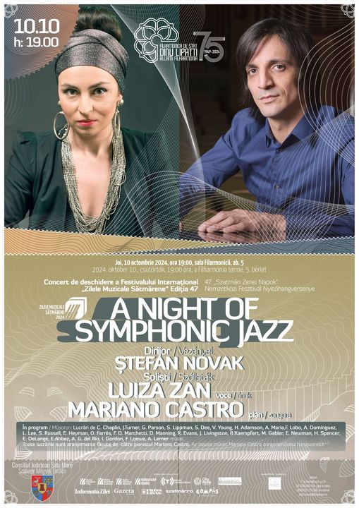 Luiza Zan, una dintre cele mai proeminente voci ale jazz-ului românesc, împreună cu Mariano Castro, un muzician complex care abordează diferite stiluri muzicale – de la tango, jazz, rock, la muzică clasică, vor fi prezenți pe scena filarmonicii, în deschiderea Festivalului Internațional „Zilele Muzicale Sătmărene”, ediția 47. Sub bagheta dirijorului Ștefan Novak și alături de orchestra filarmonicii sătmărene, au pregătit pentru public un repertoriu extrem de captivant, în sfera muzicii jazz.