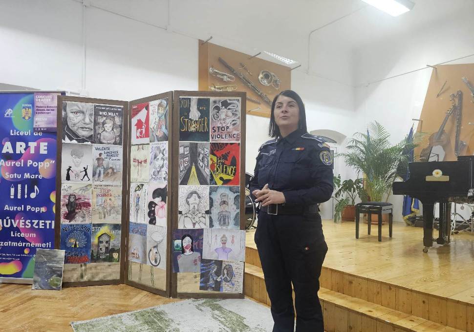 Compartimentul de Prevenire din cadrul Inspectoratului de Poliție Județean Satu Mare a derulat luni un eveniment dedicat combaterii violenței în familie, în cadrul campaniei „Scuzele nu schimbă realitatea”. Activitatea s-a desfășurat chiar la Liceul de Arte „Aurel Popp”, locul în care mesajele preventive au prins formă prin culoare, muzică și expresie vizuală.