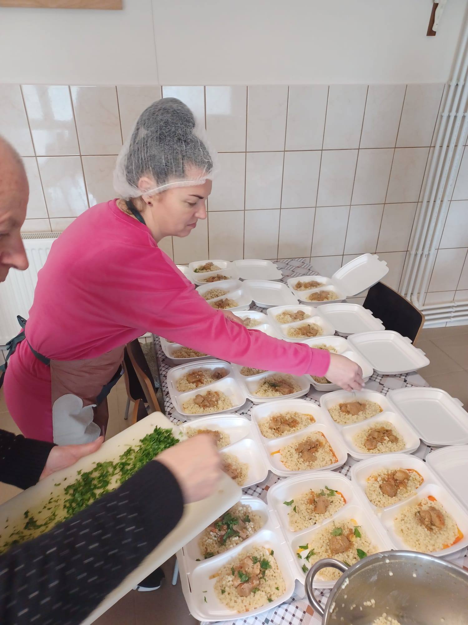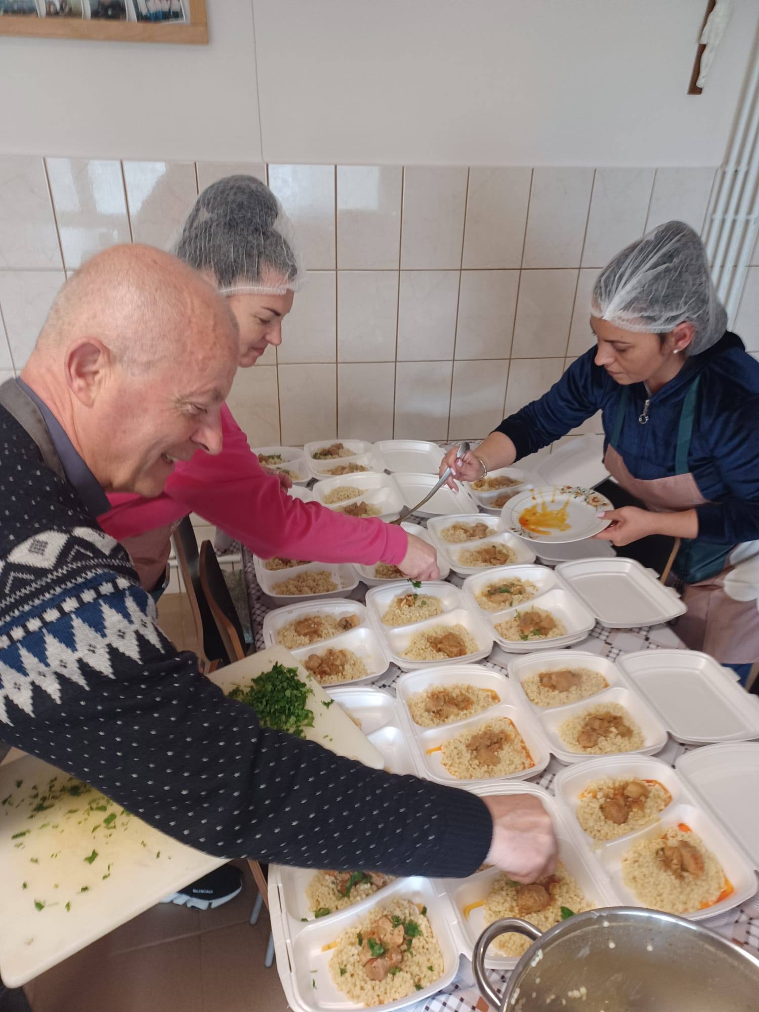 Meniul pregătit a fost unul consistent și gustos: supă de cartofi cu kaizer, cuș-cuș cu tocăniță de porc, iar la desert, gogoși pufoase, aromate și pudrate cu zahăr. Întreaga masă a fost donată beneficiarilor, gestul fiind primit cu recunoștință și apreciere.